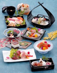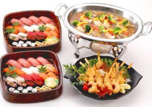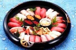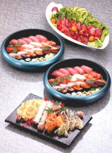 - 「絆」きずな 29,700円 にぎり鮨×2台、白身魚洋風あんかけ、串揚げ