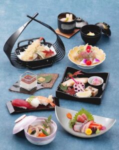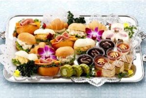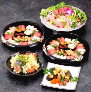 お通夜では、オードブル形式(皆でつまめるお料理)、告別式ではお膳/精進落とし(一人一人に振舞うお料理)が一般的です。