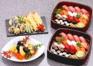 - 「和」なごみ 27,500円 にぎり鮨×2台、天ぷら、煮物